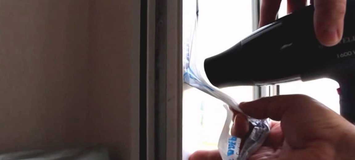 Если на окнах осталась эта липкая пленка, то удалить её можно попробовать с помощью строительного фена. Под воздействием теплого воздуха эта пленка нагревается, а затем счищается. Только делать это нужно аккуратно и не направлять струю горячего воздуха на стеклопакет.