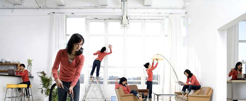 - совмещать несколько дел (например, в ожидании завершения стирки, которую хозяйка успела запустить, времени выдержки моющих средств на поверхностях сантехники, плиты, можно помыть шкафы или полки).