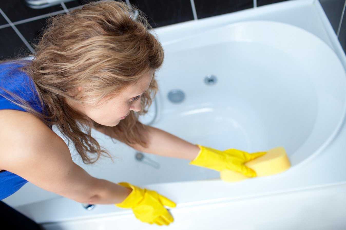 - Смачивая губку в растворе, провести обработку поверхности ванны.