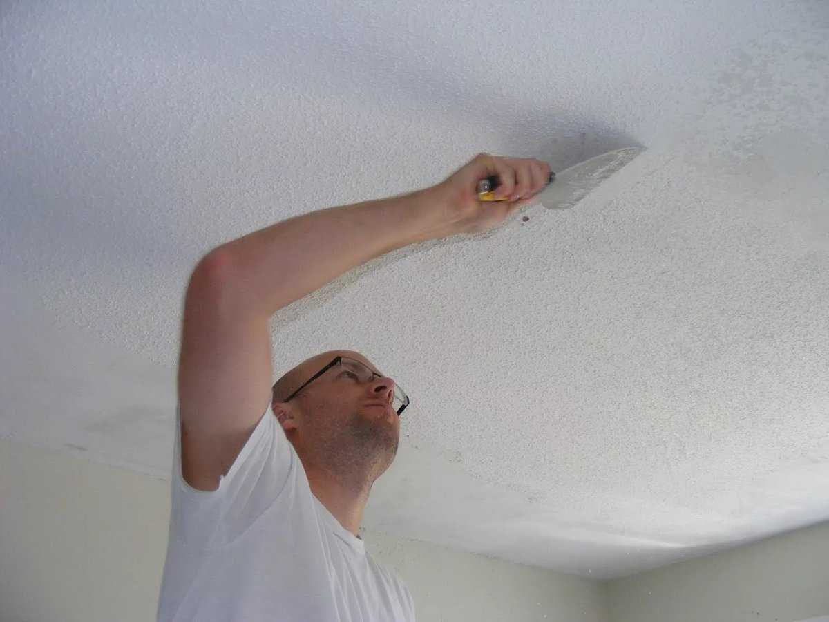 Клейстером смазывают всю поверхность потолка, ждут полного высыхания и снимают слой шпателем.