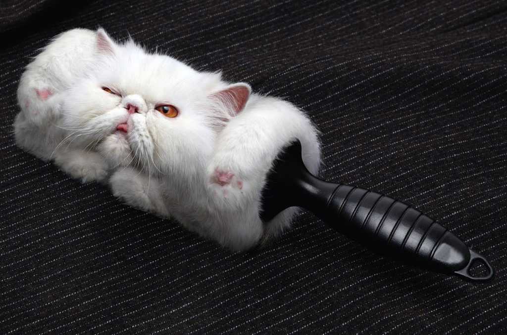 Чтобы как можно реже задумываться о том, как избавиться от шерсти кошки, нужно уделять больше времени уходу за ней. Стоит приобрести в зоомагазине специальную расческу-пуходерку, подобрав ее тип с учетом длины шерсти любимца, и регулярно его вычесывать. Если кошка очень пушистая, например персидской породы, то вычесывать нужно во время линьки не реже трех раз в день. Это может быть утомительным и занимать много времени, особенно если кошке такая процедура не по душе, однако шерсти на одежде станет намного меньше.