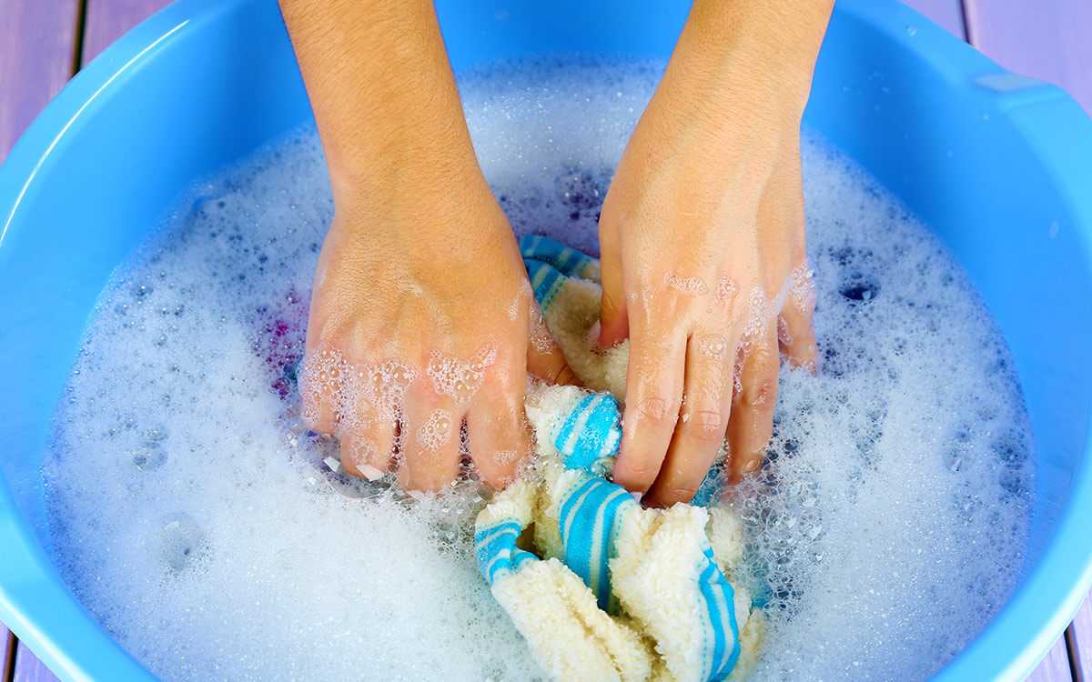 - погрузить в таз испачканную вещь, и интенсивно потереть загрязнение руками;