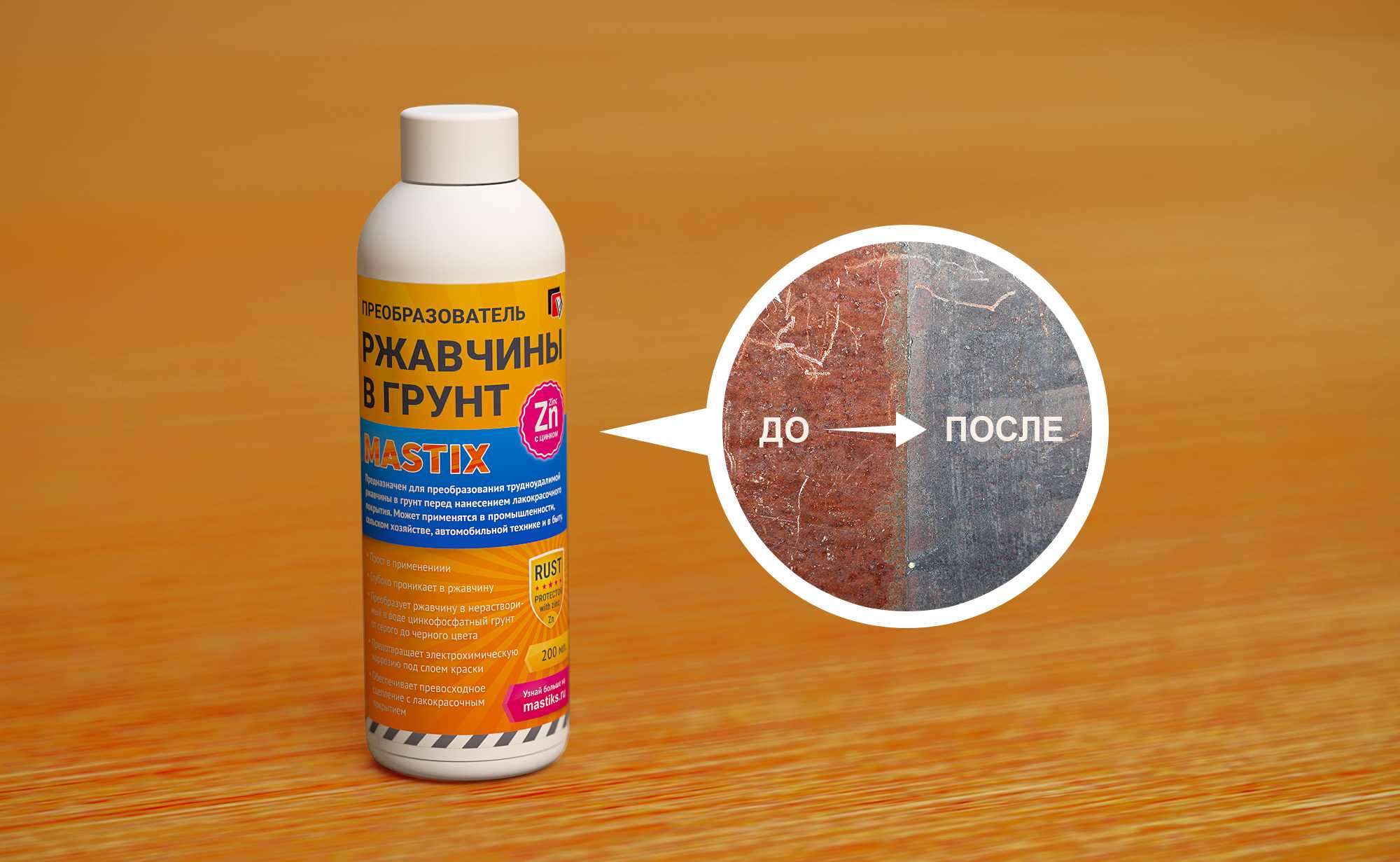 - прекрасно справляется с преобразованием ржавчины в грунт;