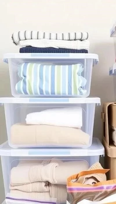 При хранении трикотажа и шерстяных вещей избегайте вешалок, так как они могут деформировать изделия. Лучше всего складывать их аккуратными стопками и хранить в контейнерах или на полках. Регулярно перебирайте сезонную одежду и избавляйтесь от вещей, которые вы больше не носите.