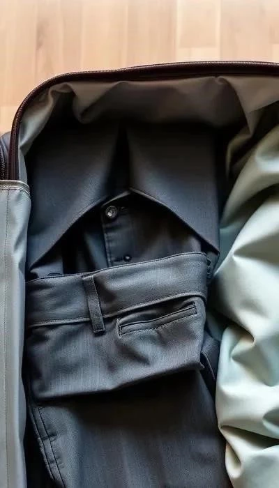 Для классических брюк, платьев и пиджаков лучше использовать метод складывания. Аккуратно сложите вещь по всем швам, чтобы избежать складок. Поместите сложенную одежду в чемодан поверх других вещей.