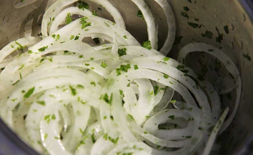 - на 1 кг лука потребуется 250 г соли;
