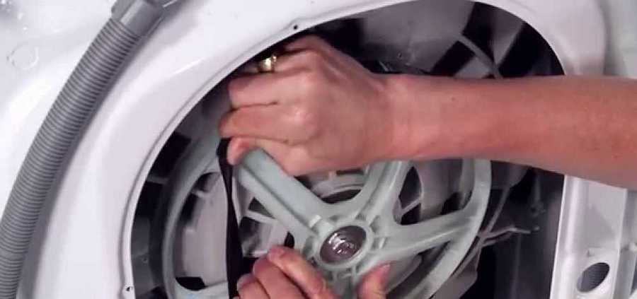 Благодаря ременной передаче происходит вращение шкива барабана. Как всякая механическая передача она может быть нарушена. Если ремешок слетел один раз, не беда — ниже мы расскажем, как поставить ремень самостоятельно, не вызывая мастера. Но бывает, что ремень привода приходится возвращать на место раз за разом. Причины неполадки: