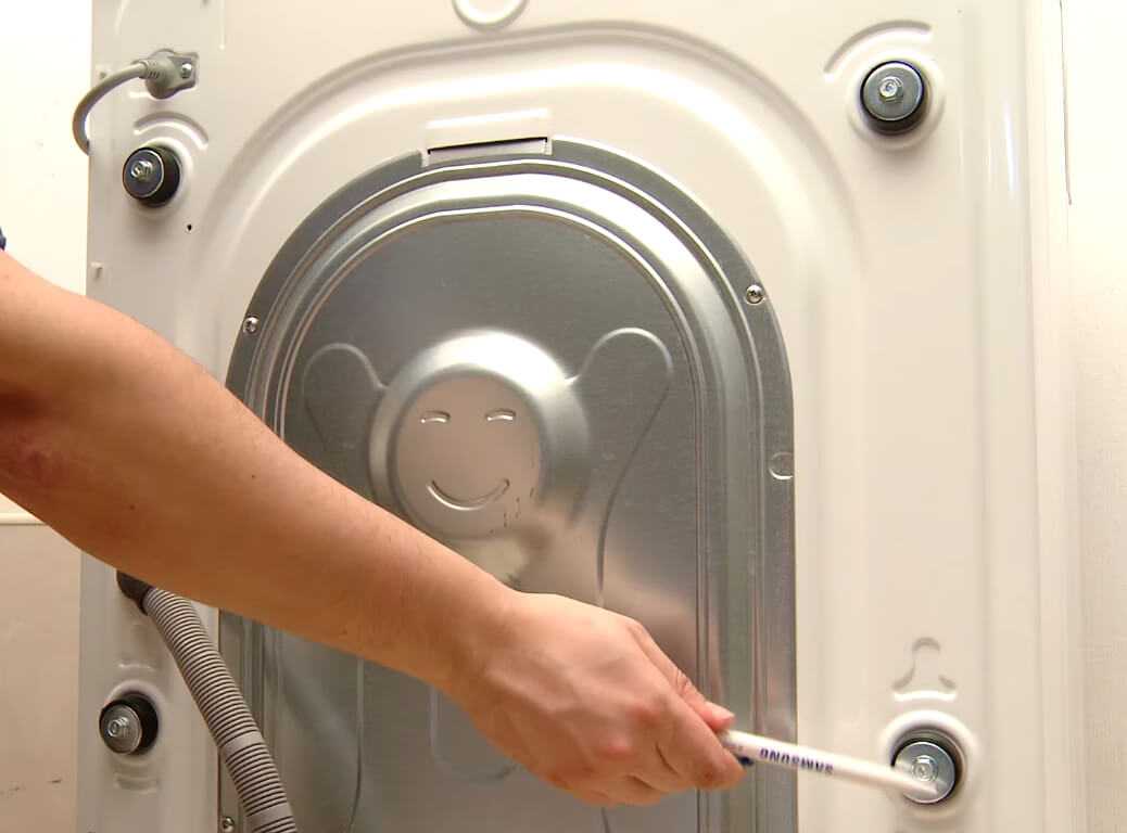 Потребность снять заднюю стенку стиральной машины Самсунг может возникнуть при необходимости проверить щетки электродвигателя, заменить приводной ремень или, например, осмотреть шкив. Обычно, разобрать корпус машинки несложно, но у моделей Samsung просто так отсоединить панель не удастся. Разберемся, как получить доступ к деталям, расположенным сзади, как осуществить демонтаж задней стенки стиралки.