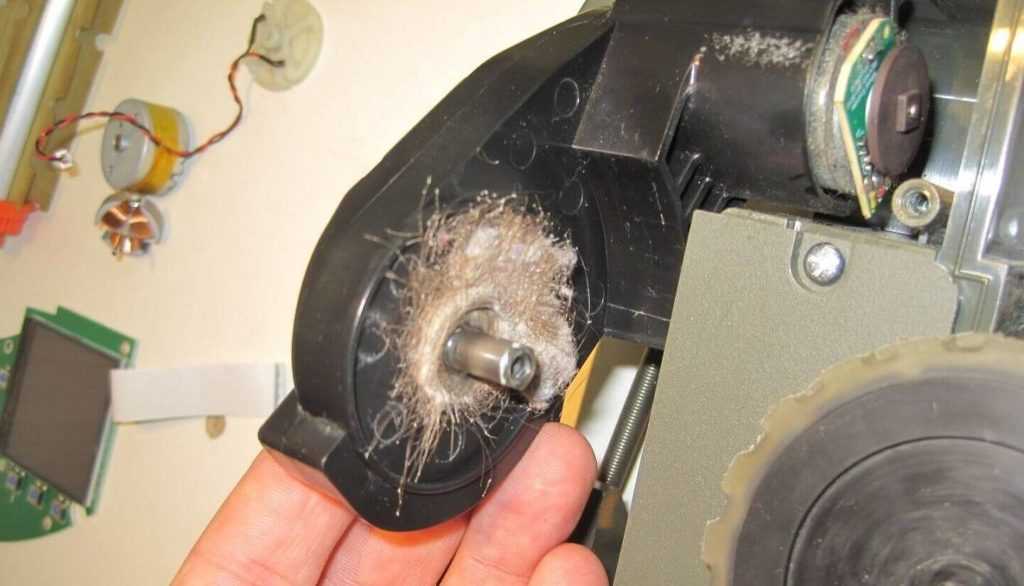При постоянной эксплуатации могут появляться различные поломки. Часто пользователи сталкиваются с тем, что сломалось колесо у робота пылесоса. Неисправность могут вызвать волосы и шерсть домашних животных. В процессе уборки они постепенно наматываются на колесо. Если постоянно не очищать устройство, со временем колесо перестанет вращаться. Потребуется аккуратно удалить все волоски с колеса.
