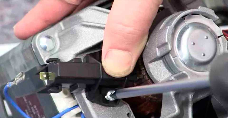 После того как двигатель извлечен из корпуса стиралки, открывается доступ для детального осмотра щеток. Это две выступающие пластины, расположенные на корпусе двигателя.