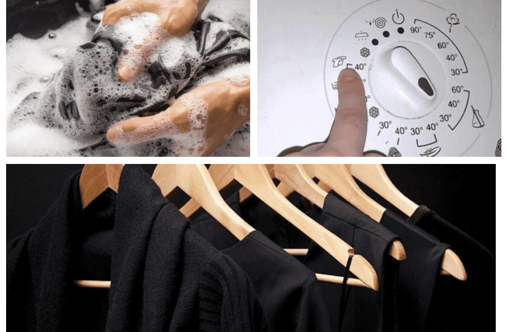 Черные вещи всегда стирают вывернутыми наизнанку. Данная мера позволяет надолго сохранить яркость цвета.